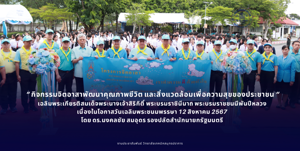 9 สิงหาคม 2567 วิทยาลัยเทคนิคสมุทรปราการ ร่วมกับ สำนักงานจิตอาสาภาครัฐ สำนักนายกรัฐมนตรี จัดกิจกรรมจิตอาสาพัฒนาคุณภาพชีวิต และสิ่งแวดล้อมเพื่อความสุขของประชาชน เฉลิมพระเกียรติสมเด็จพระนางเจ้าสิริกิติ์ พระบรมราชินีนาถ พระบรมราชชนนี พันปีหลวง เนื่องในโอกาสวันเฉลิมพระชนมพรรษา 12 สิงหาคม 2567 โดยมี ดร.มงคลชัย สมอุดร […]