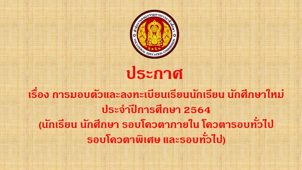 ประกาศวิทยาลัยเทคนิคสมุทรปราการ เรื่อง การมอบตัวและลงทะเบียนเรียนนักเรียน นักศึกษาใหม่ ประจำปีการศึกษา 2564 (นักเรียน นักศึกษา รอบโควตาภายใน โควตารอบทั่วไป รอบโควตาพิเศษ และรอบทั่วไป) ที่ทำการชำระเงินเรียบร้อยแล้ว ให้ทำการมอบตัว ส่งเอกสารการมอบตัวและลงทะเบียนเรียน ภายในวันที่ 10 – 21 พฤษภาคม